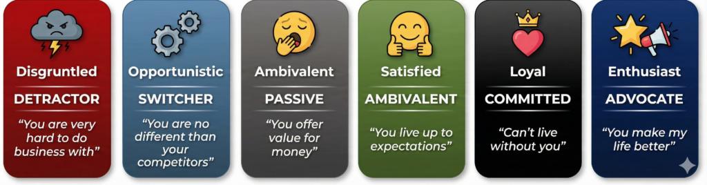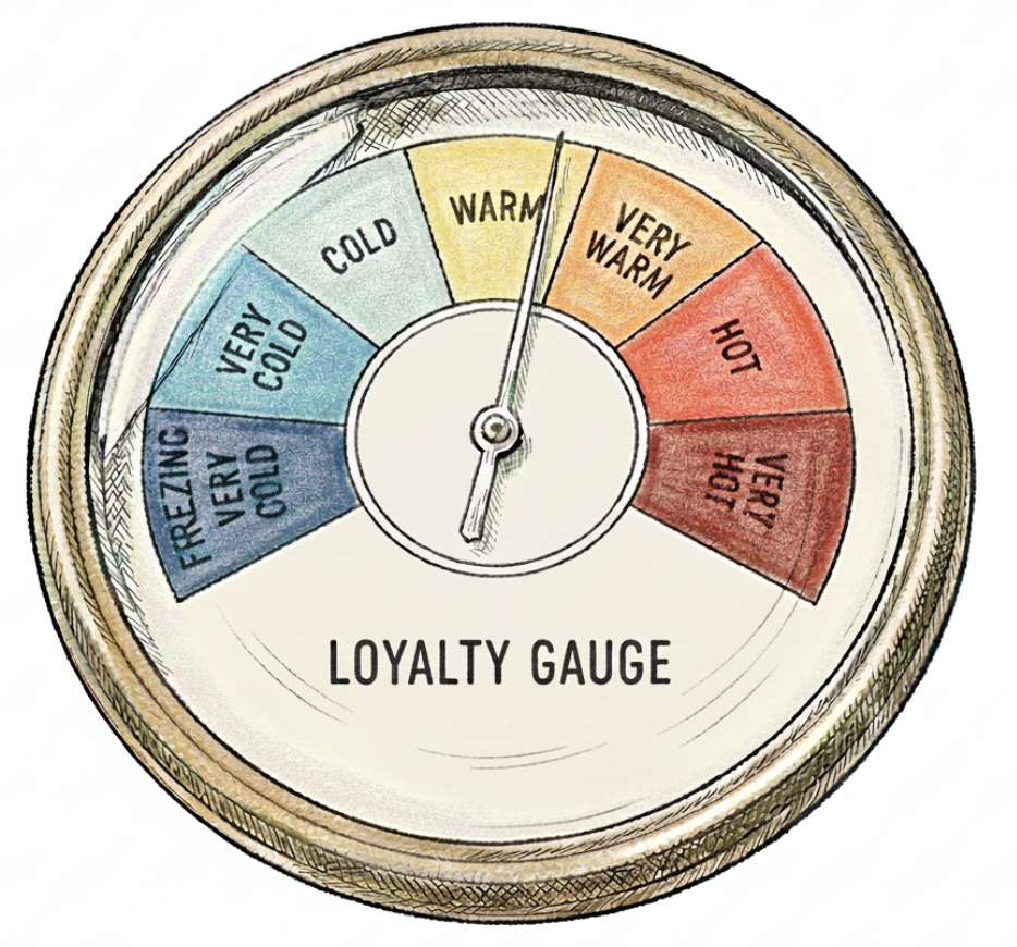 Assessing the degree of loyalty is like taking the temperature of customers which ranges from Very Hot to Freezing.