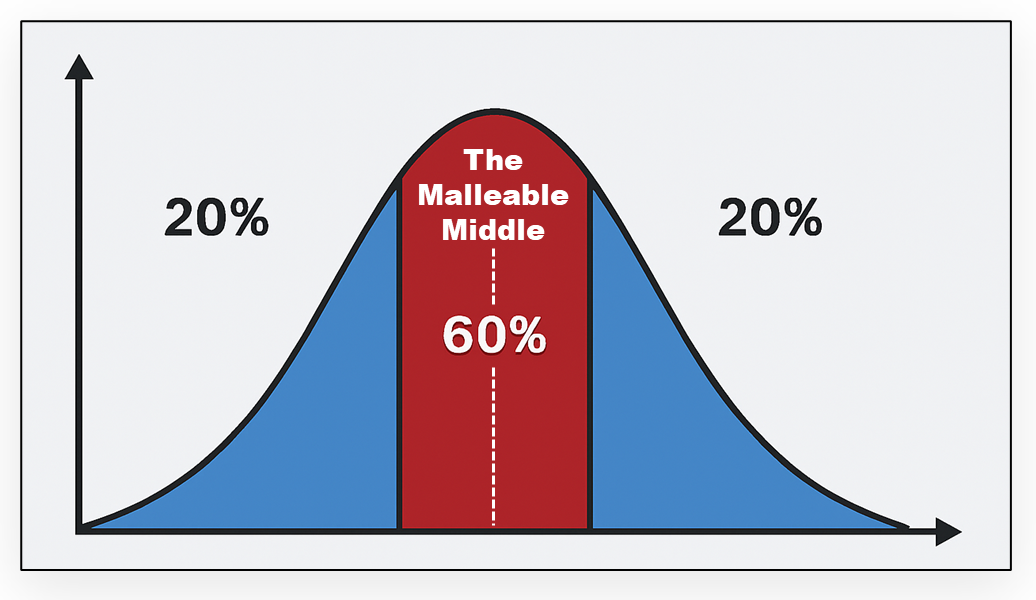 Loyalty is not a binary variable – yes or no – it is a continuous variable that can be measured on a linear scale, from “committed” to “enthused” to “ambivalent” to “tepid” to “fragile”. Or think of a temperature gauge: “Very Hot”, “Warm”; “Cold”; “Freezing”. If you drew a diagram the customer base would look like a Bell Curve, with 60% of customers in the “Malleable Middle”, capable of leaning one way or the other depending on whether they’re feeling “hot” or “cold”. The hardest part for marketers is to find out exactly how many customers are the most “malleable”, and then give them a reason to care. But before they can do that, marketers need a method to gauge the temperature. Who is hot? Who is warm? Who is cold?